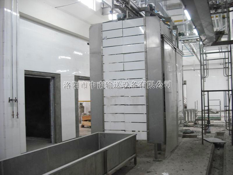 15516371888本機對懸掛輸送線(xiàn)上傳送運行中的毛豬,進(jìn)行機械刷洗。該機采用對稱(chēng)直立滾筒,,外接橡膠條,以及沖淋?chē)娝?,對豬體進(jìn)行洗刷。本機外型結構簡(jiǎn)潔,使用維護方便,是大中小型肉類(lèi)加工廠(chǎng)選擇的設備。